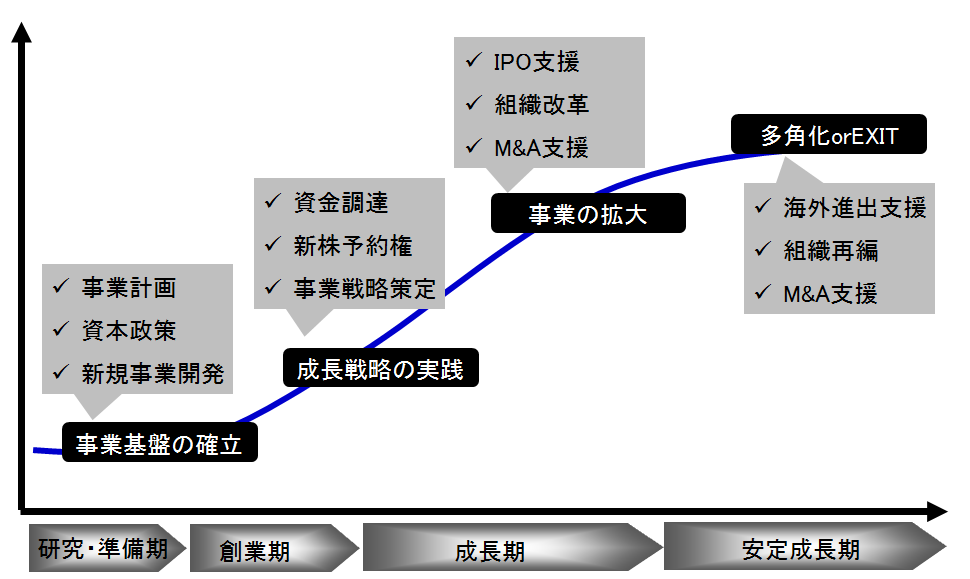 企業のステージとコンサルティングメニュー